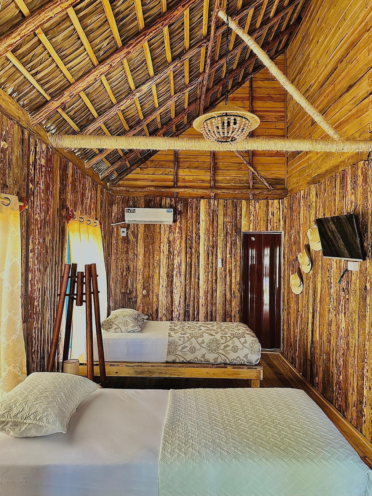 आमचे लाकडी केबिन एक्सप्लोरर्ससाठी अनोख्या ग्रामीण रात्रीचा आनंद घेण्यासाठी योग्य ठिकाण आहे. जागेची अडाणी आणि विस्तृत सजावट, पेंडंट शॅंडेलियर, वैभवशाली क्वीन साईझ बेड आणि रूमला सुशोभित करणारे खाजगी बाथरूम यामुळे तुम्हाला एक अद्भुत वास्तव्य मिळेल. बाहेरील, नदी आणि तंबाखूच्या वृक्षारोपणांच्या पॅनोरॅमिक दृश्यासह खिडक्या तुम्हाला सकाळी उठल्यावर सर्वात अप्रतिम अनुभव देतील.