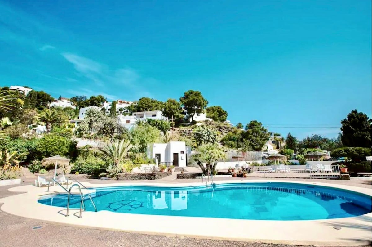 व्ह्यूज असलेले अपार्टमेंट अतिशय उज्ज्वल, सुंदर आणि आरामदायक दृश्यांसह. हे पूर्णपणे सुसज्ज आहे, चांगल्या सजावटीसह. विहंगम दृश्यांसह टेरेस. अपार्टमेंट एका शांत आणि व्यवस्थित ठेवलेल्या निवासीमध्ये आहे, जे विश्रांतीसाठी योग्य आहे. बीच बीचपासून 10 मिनिटांच्या अंतरावर आहे. गॅरुचा खूप जवळ आहे आमच्या अद्भुत "कॅबो डी गाटा नॅचरल पार्क" च्या निकटतेमुळे गोल्फच्या प्रेमींसाठी; निसर्गाच्या शुद्ध स्थितीत हे आदर्श आहे. दीर्घकाळ वास्तव्यासाठी आणि Teletrabajar.m साठी देखील उत्तम