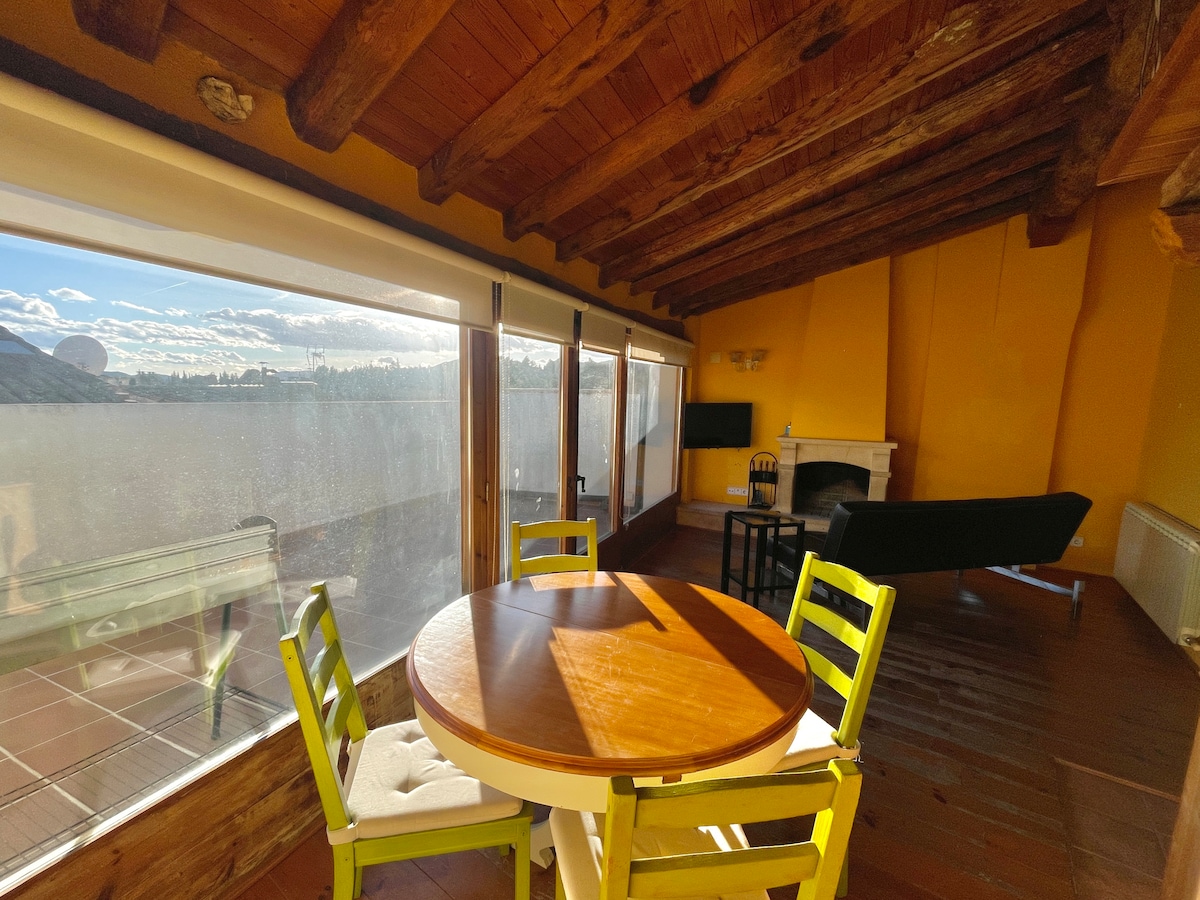 माऊंटन व्ह्यूज असलेले अपार्टमेंट. खूप उबदार आणि उज्ज्वल. डायनिंग रूममध्ये डबल बेड आणि सोफा बेड असलेली 1 बेडरूम. 4 लोकांसाठी कुटुंबे आणि मित्रांच्या ग्रुप्ससाठी आदर्श. लिनन समाविष्ट आहे. तुमच्याकडे वायफाय असेल. भांडी, फ्रिज, वॉशिंग मशीन आणि ओव्हनसह पूर्ण किचन. टॉयलेटमध्ये टॉवेल्स, साबण आणि टॉयलेट पेपर आहेत. टेलिव्हिजनमध्ये थंडीच्या दिवसांसाठी हीटिंग आणि हीटिंगचा समावेश आहे. तुमच्या पाळीव प्राण्याचे स्वागत आहे. अविश्वसनीय दृश्यांसह मोठे टेरेस. क्लाइंबिंग, सहली इत्यादींसाठी योग्य वातावरण.