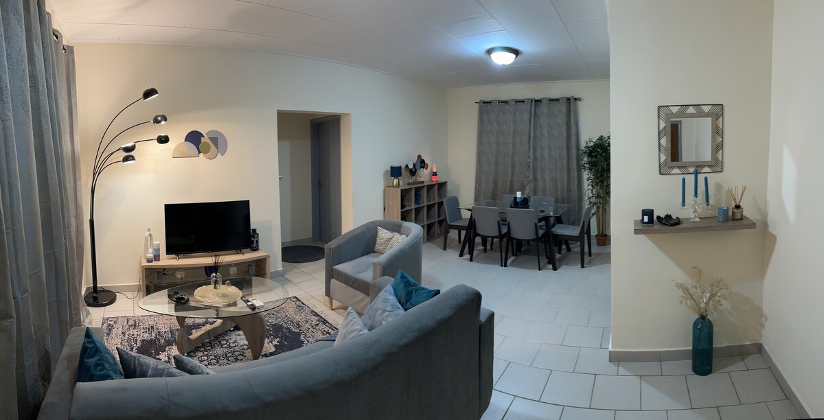 तुम्ही बिझनेस ट्रिपवर असाल किंवा सुट्टीवर असाल, या आरामदायक, शांत आणि राहण्याच्या सुरक्षित ठिकाणी आराम करा. सुविधांच्या जवळ असलेल्या निवासी भागात अंगोंडजे/शेरको जिल्ह्याच्या मध्यभागी वसलेले: किराणा दुकान; फार्मसी सुपरमार्केट; बेकरी; रेस्टॉरंट; गॅस स्टेशन; नाईट क्लब; बार इ. हे निवासस्थान तुम्हाला आवश्यक असलेले आरामदायी आणि शांतता देते, सुंदरपणे सुसज्ज आणि पूर्णपणे वातानुकूलित. स्वागतार्ह वातावरणात लिब्रेविलमधील सर्वोत्तम वास्तव्य करा. लवकरच भेटू.