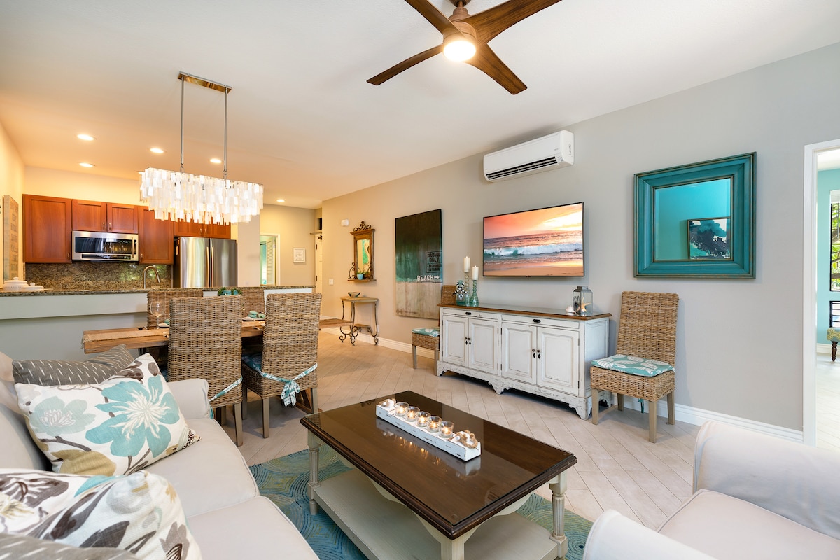 Looking for the perfect Air-Conditioned condo for the ultimate Kaua'i vacation? Our premium condo offers brand new furniture & beds & huge tv's! It’s the perfect place for families to come together for an amazing vacation. Waipouli Resort has Kauai's ONLY heated soft-water relaxing river & walking pool w/ 2 water slides, 3 sand-bottom whirlpool hot tubs, 3 waterfalls & a child-friendly sandy beach & plus beautiful 3rd floor views! Plus I'll send you a list of activities, hikes, beaches & more!