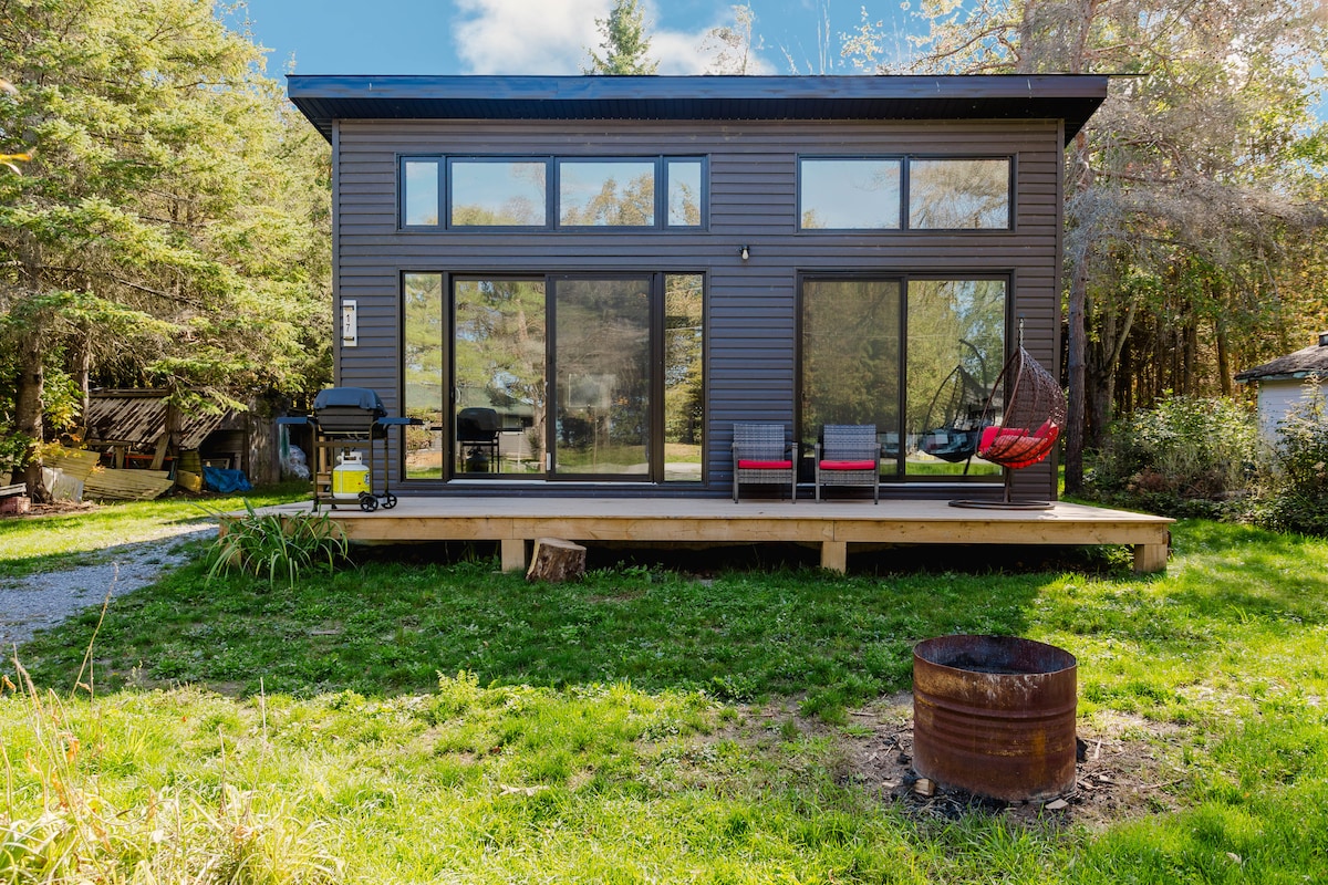 An amazing getaway space for two and your dog on beautiful Musselman's Lake, close to Toronto but feels like you're in the Muskokas. This rustic designer one-bedroom cabin is the original attached cottage that our house grew from. Sit at the dock or on your patio to watch the spectacular sunsets. Have a coffee in the backyard and watch the sunrise over 160 acres of trails out your back door. This is your retreat with high-speed internet, full-size kitchen & dining area to enjoy cottage life.
