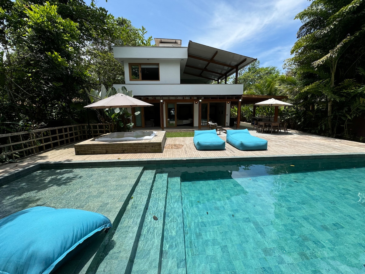 आमचे घर मूळ जंगलाच्या मध्यभागी, तलावाच्या समोर आणि बीचपासून 1 मिनिटाच्या अंतरावर आहे. यात दोन अतिशय प्रशस्त मजले आहेत. तळमजल्यावर, किचन, डायनिंग रूम, टीव्ही रूम, मोठी बाल्कनी, बार्बेक्यू, पूल टेबल, डार्ट्स, आऊटडोअर शॉवर. वरच्या मजल्यावर, एक लिव्हिंग रूम आणि दोन मोठे सुईट्स, एक प्रशस्त ऑफिस आणि अप्रतिम दृश्यांसह एक मोठी बाल्कनी! रिझर्व्हेशनमध्ये वास्तव्यादरम्यान स्वच्छता सेवेचा समावेश आहे. आरामदायी आणि स्टाईलमध्ये आनंद घेण्यासाठी तुमच्यासाठी योग्य जागा.