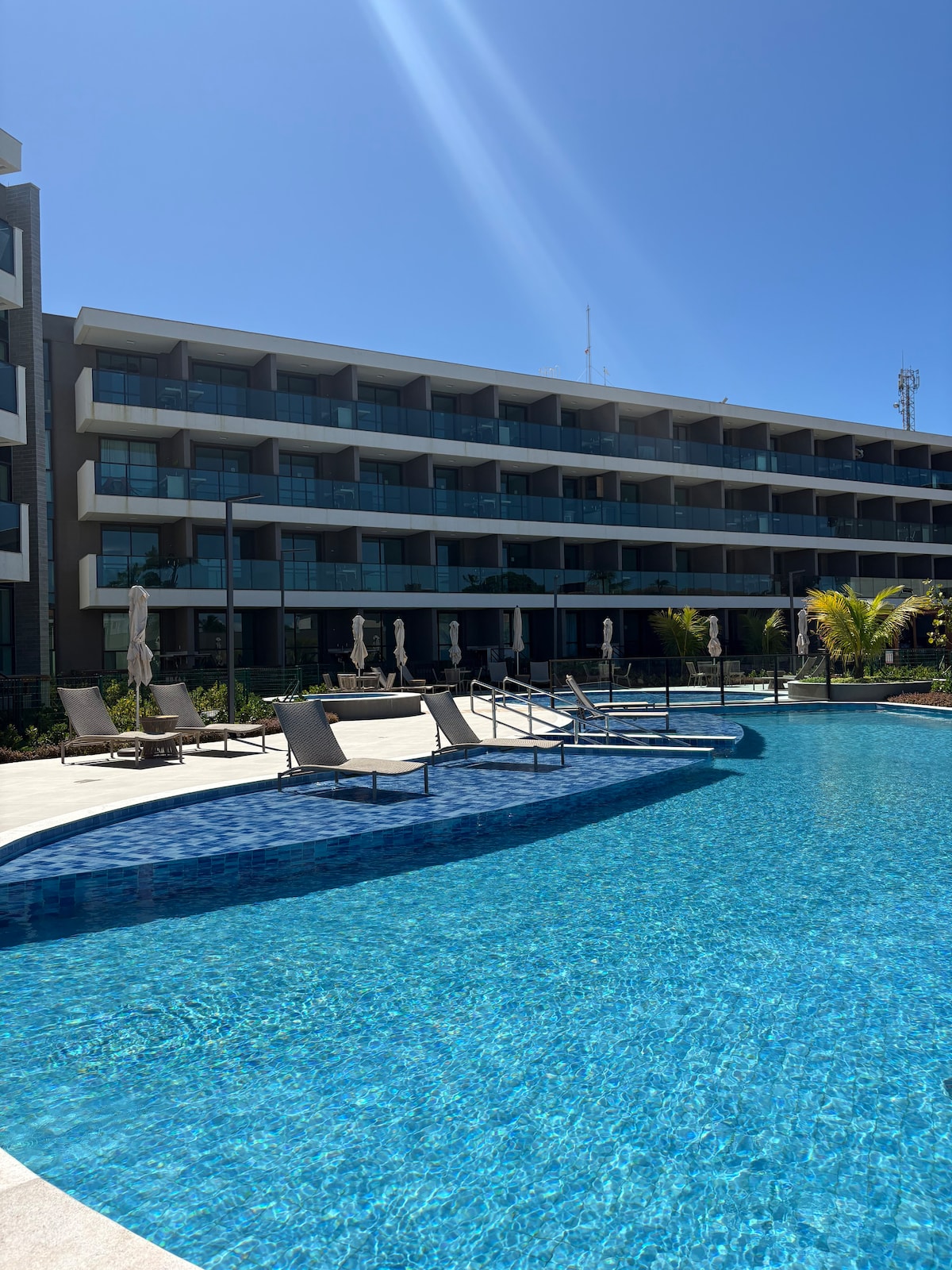 एका अप्रतिम रिसॉर्टमध्ये लक्झरी पूर्ण अपार्टमेंट! पूल त्याच्या मार्गाने पसरलेला आहे. ट्रॉपिकल गार्डन्स आणि अत्याधुनिक अपार्टमेंट ब्लॉक्स आणि बंगले आणि ब्राझीलमधील सर्वोत्तम समुद्रकिनार्यांनी वेढलेले आहे. पूल एरियामध्ये दोन जकूझी, दोन स्वादिष्ट रेस्टॉरंट्स देखील आहेत. अपार्टमेंटमध्ये, त्यात दोन डबल बेड्स आणि एक सोफा बेड आणि बेड लिनन आणि टॉवेल्स फक्त अपार्टमेंटच्या आत वापरण्यासाठी आहेत.