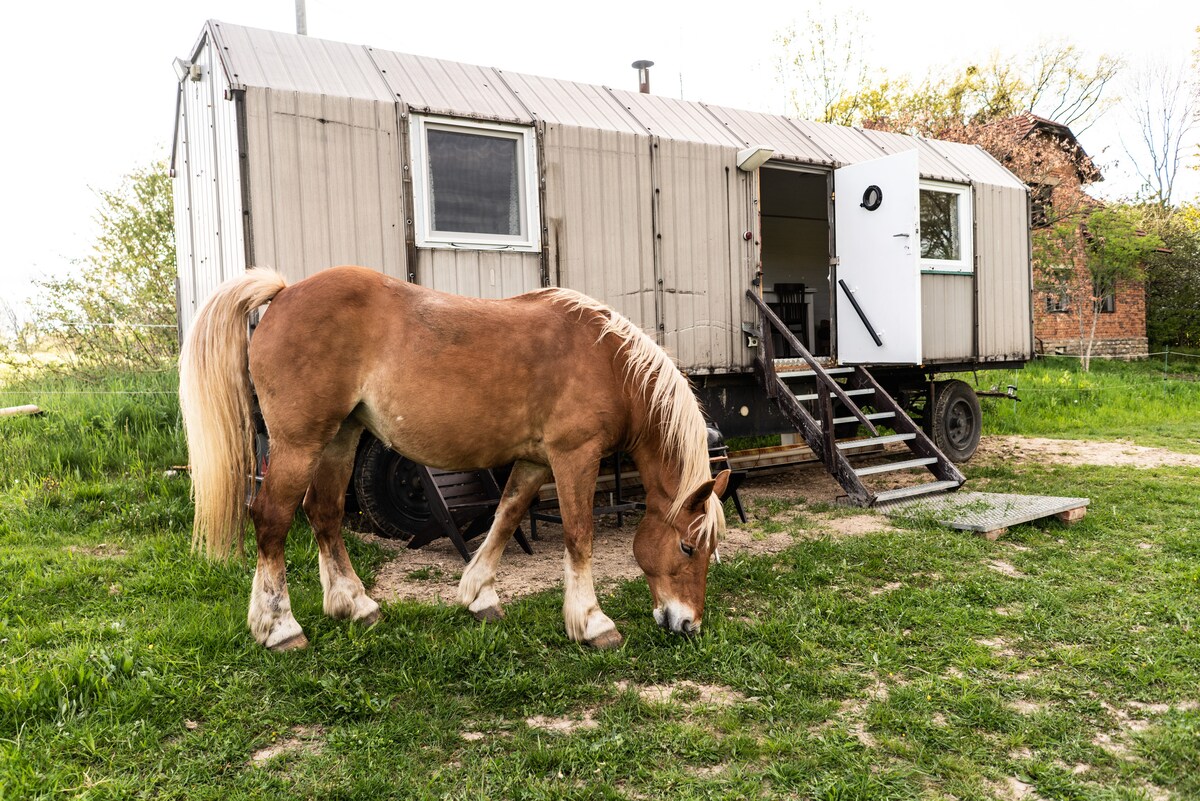 तर हा आमचा 6 टन्सचा क्रंब आहे. आम्ही सनी कॅलिफोर्नियापासून एकत्र एक मोठा प्रवास केला, जेव्हा आमची विलक्षण रुफस फोर्ड e350 पासून बनली, जी कालांतराने फक्त सेवानिवृत्त स्कूल बस आहे. 😊 पूर्णपणे सुसज्ज किचन, 140x200 सेमी बेड, स्टोरेजची जागा, डायनिंग रूम, मूळ सोफा, डॅशबोर्ड आणि हँडहेल्ड डोअर लीव्हर. बाहेर एक टेरेस आहे ज्यात ग्रिल आणि बसण्याची जागा आहे, एक सौर शॉवर आहे - पाणी उबदार, कोरडे टॉयलेट, परंतु विशेषत: सुंदर निसर्ग आणि शांती मिळवण्यासाठी उबदार करते. FB आणि IG: फॉरेस्ट ॲडव्हेंचर