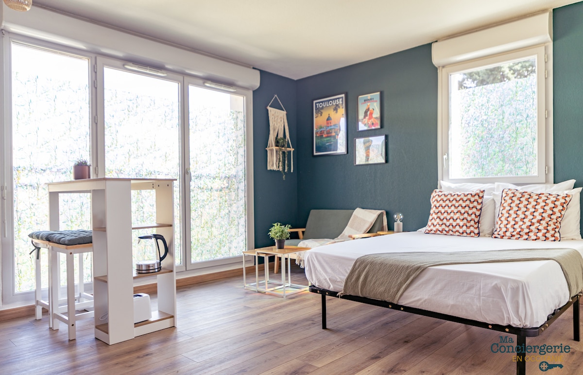 Logement accès en rdc cosy, paisible et central. Le Zénith est à 4mn en voiture, les Halles de la cartoucherie sont accessibles à pied, lieu favori des gourmets toulousains ! L’hôpital de Purpan est à 4mn en voiture. Le tramway, bus, commerces de premières nécessités, station vélos, parc pour enfants sont accessibles à pied. Quartier résidentiel très calme, possibilité de se garer dans la rue gratuitement. Les draps ne sont pas fournis mais possibilité d’en avoir moyennant un supplément (10€).
