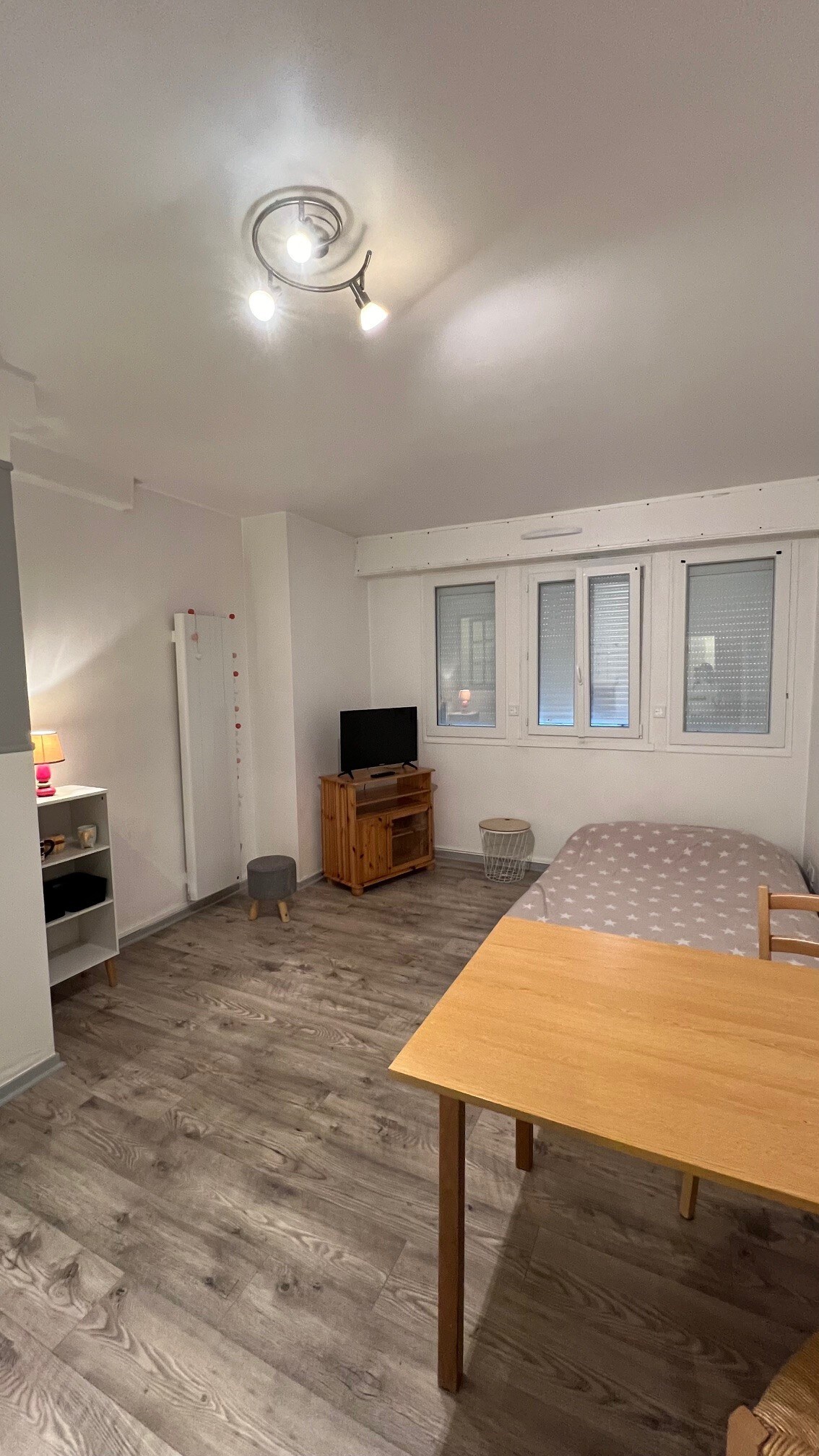दीनान रेल्वे स्थानकात स्थित 18m2 चा स्टुडिओ. ऐतिहासिक केंद्र आणि त्याच्या किल्ल्यापासून 5 मिनिटांच्या अंतरावर. सर्व दुकानांच्या जवळ. त्याच्या सामूहिक बागेसह शांत आणि आनंददायक. साधेपणासाठी की बॉक्ससह प्रवेश. इंटिरियरसाठी: लिव्हिंग रूममध्ये, किचनच्या खाली लपवलेला खरा बेड, सोफा म्हणून देखील काम करतो. टीव्हीसमोरील लहान डायनिंग एरियासाठी कमी लिफ्ट करण्यायोग्य टेबल. डिशवॉशर वगळता पूर्णपणे सुसज्ज किचन. शॉवर क्युबिकलसह बाथरूम.