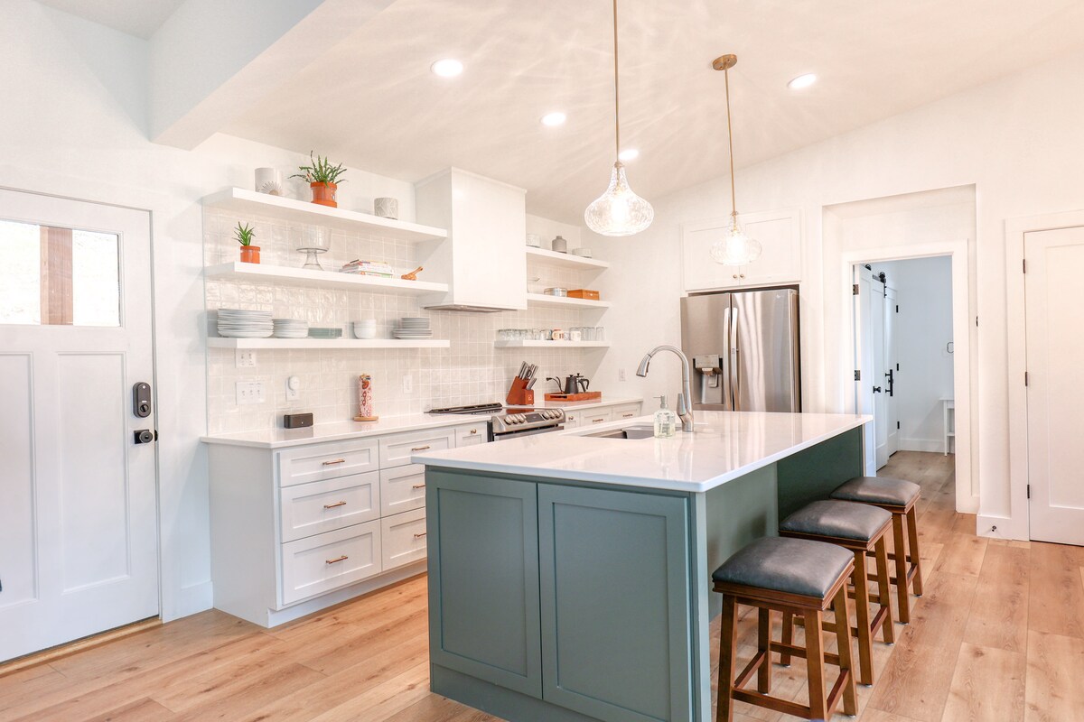 ठीक आहे, ही 820 चौरस फूट उंचीची खाडीची केबिन 1950 च्या दशकातील मोहकतेसह आधुनिक आरामदायक - दोन क्वीन बेडरूम्स, एक उज्ज्वल किचन आणि आरामदायक लिव्हिंग रूमसह मिसळते. संथ सकाळ आणि सूर्यास्ताच्या चॅट्ससाठी बॅक पोर्च किंवा क्रीकसाइड पॅटीओवर जा, नंतर डिनर, क्राफ्ट ड्रिंक्स आणि डेझर्टसाठी क्लेटन शहराकडे 5 मिनिटे भटकंती करा. त्यानंतर, ताऱ्यांच्या खाली असलेल्या हॉट टबमध्ये उडी मारा. ट्रेल्स, धबधबे, पांढरे पाणी आणि ब्लॅक रॉक माऊंटन व्हिस्टा काही मिनिटांच्या अंतरावर आहेत.