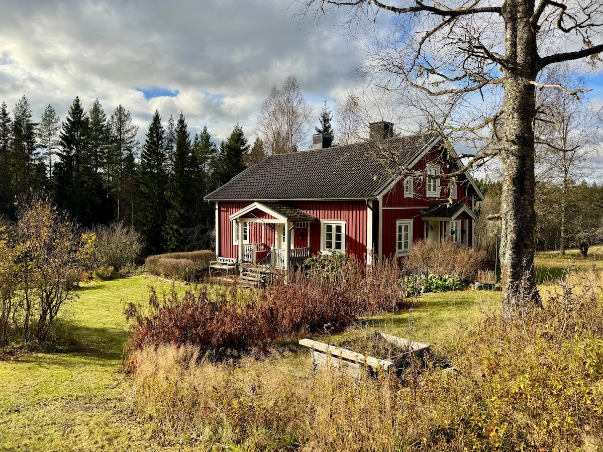 आमच्या छोट्या ऑरगॅनिक फार्मवर या आणि वास्तव्य करा. तुमच्याकडे तलावाजवळ सॉनामध्ये प्रवेश असलेले तुमचे स्वतःचे सुंदर घर आहे. जंगलात किंवा फार्मच्या सभोवतालच्या रस्त्यावर फिरून प्राण्यांना हॅलो म्हणा. अस्सल भावनेसह हे एक ॲक्टिव्ह स्मॉल स्केल फार्म आहे! निसर्ग, शांतता आणि ताऱ्यांनी भरलेल्या आकाशाचा अनुभव घ्या :-)