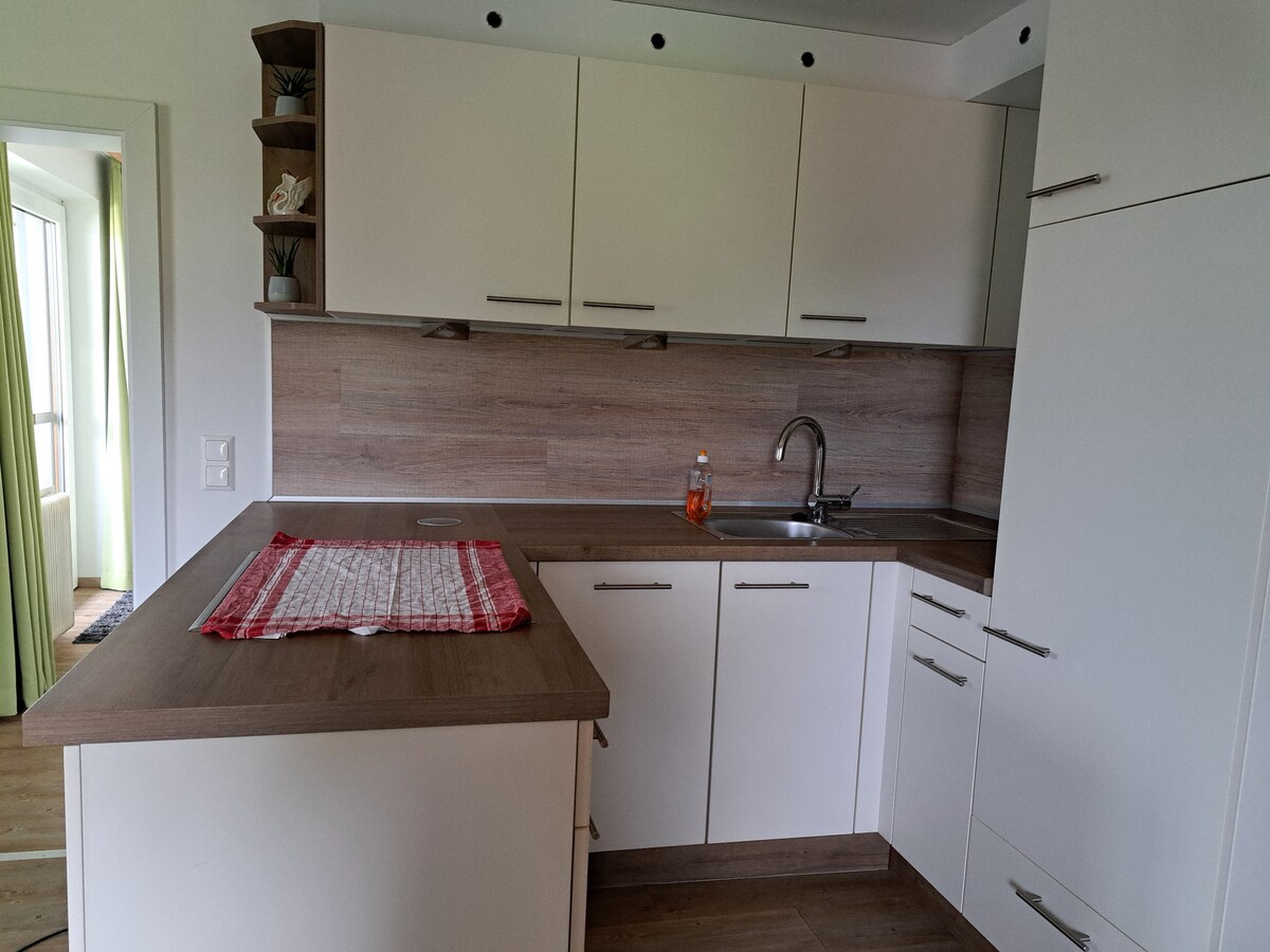 आमच्या सुंदर पर्वतांमुळे, स्कीइंग, बाइकिंग, हायकिंगमुळे तुम्ही येत असाल... ही तुमची राहण्याची जागा आहे. घराच्या वरच्या मजल्यावरील अपार्टमेंटमध्ये 2 रूम्स (1 किंग साईझ बेड आणि विस्तार करण्यायोग्य सोफा असलेली लिव्हिंग रूम) आहेत जे कॉमन बाल्कनी शेअर करतात. किचनमध्ये सर्व मूलभूत कुकवेअर आणि रेफ्रिजरेटर आहेत. रूममधील बाथरूम वॉशिंग मशीनसह सुसज्ज आहे. तुम्हाला मिळालेल्या प्रत्येक गरजेची काळजी घेतली जाईल. तुमचे स्वागत आहे!