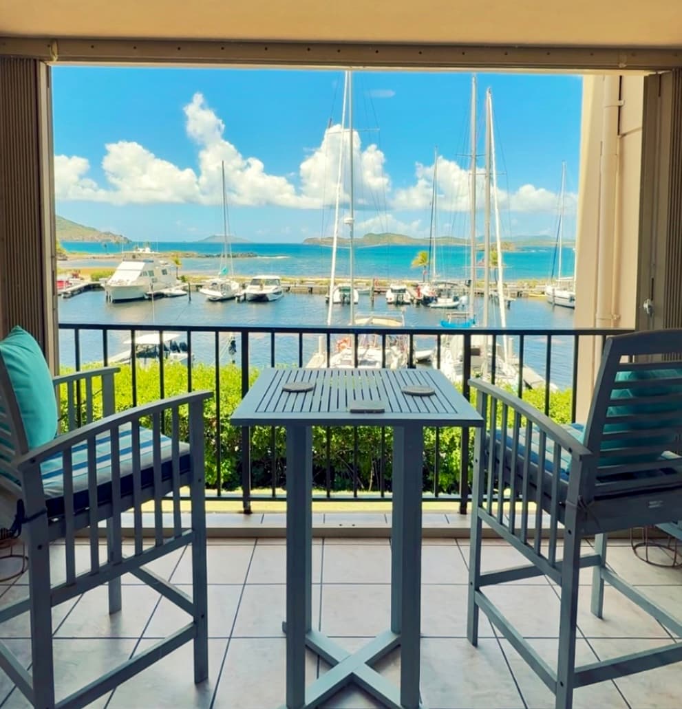 Located at Sapphire Beach Resort! Prime ocean and marina views! This beautifully decorated and fully furnished condo sleeps up to 4. Enjoy the beautiful views of the marina and St. John all from the private balcony. The condo offers outdoor grill, full cable package, AC, WIFI, and plush King bed and Queen sofa pullout. If needing additional space for friends or family we do have another property at Sapphire Beach Resort and are happy to accommodate your group.