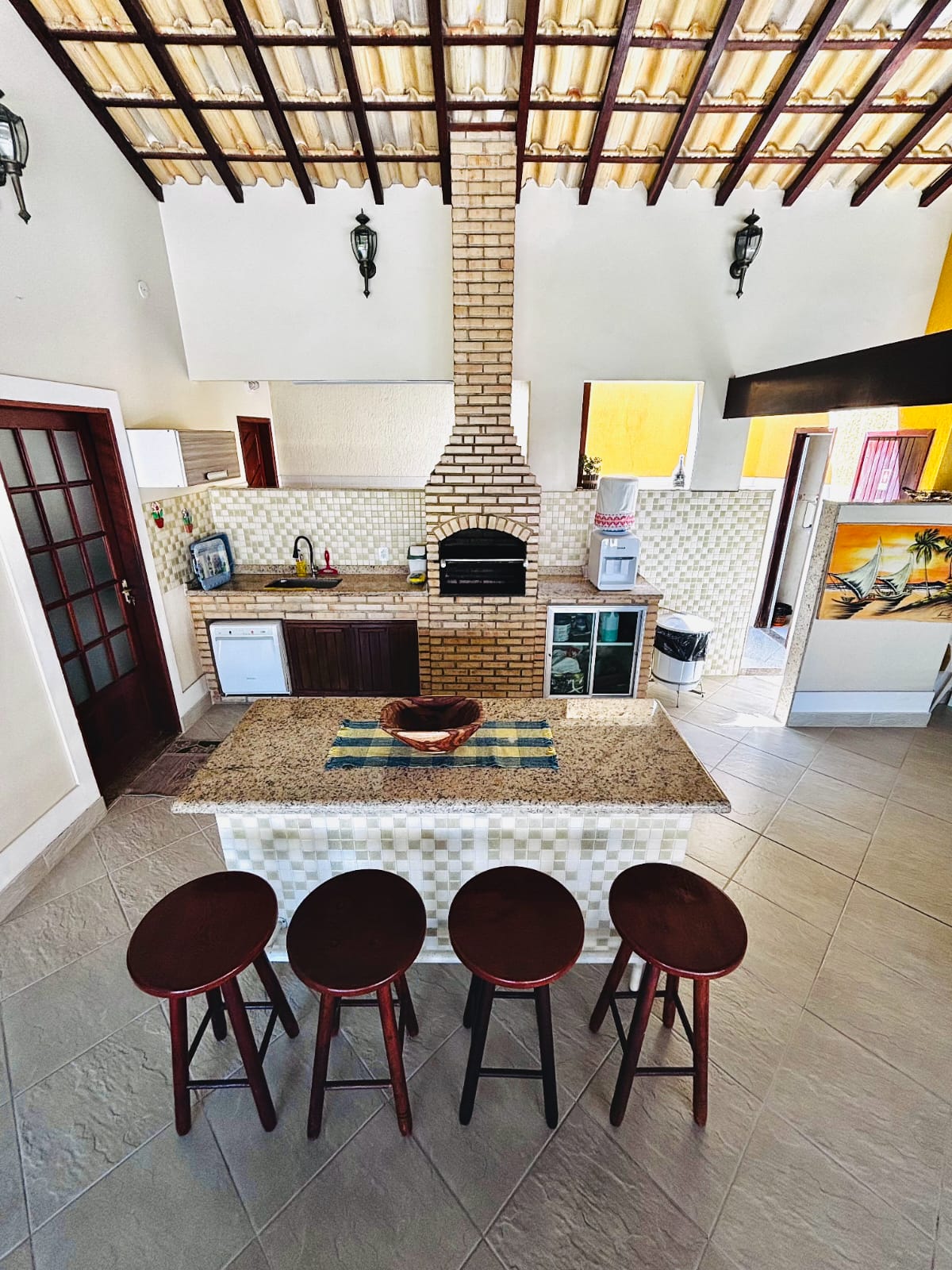 Relaxe e aproveite com sua família em uma casa completa: piscina, churrasqueira, ar-condicionado nos quartos e sala de TV. A casa principal fica a 30 metros da casa de hóspedes, conforto e privacidade para todos. Estamos em uma localização ideal! A 9km da Rua das Pedras, 5km da Praia de Geribá e a 100 metros do restaurante Belli Belli, de frente para a Praia da Marina. Para o dia a dia, você tem: o Duo Market e o Golden Market a 1,5km e o centro da Rasa, com farmácias e mercados, a 3,5km.
