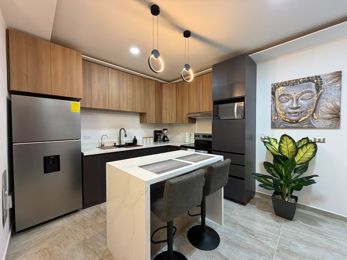 тАв Furnished terrace + complimentary coffee to unwind тАв Luxurious and safe apartment тАв 15 minutes from the U.S. Embassy тАв 2 bedrooms, each with a private bathroom, blackout curtains, and A/C тАв Fully equipped kitchen тАв Free washer and dryer тАв 3 Smart TVs with Netflix тАв Ideal location: walk to Multiplaza Mall, banks, and restaurants тАв Perfect for 4 guests (up to 5: 1 on the sofa) тАв Pets welcome!