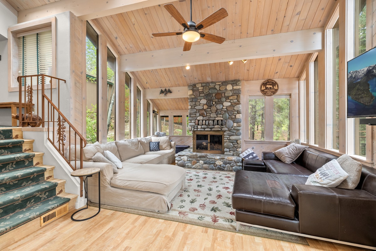 तुम्हाला या नव्याने नूतनीकरण केलेल्या आधुनिक/रस्टिक फार्महाऊस केबिनमध्ये राहणे आवडेल! गॉरमेट किचन, करमणुकीसाठी मोठे आऊटडोअर डेक, W/D असलेले गॅरेज, एक उबदार गॅस फायरप्लेस आणि ते सर्व चालण्याच्या अंतरावर: सुंदर सार्वजनिक वाळूचे बीच, गोल्फ कोर्स, रेस्टॉरंट्स, कॅफे, चालणे/हायकिंग/बाइकिंग/एक्ससी स्की ट्रेल्स, एक भव्य पार्क आणि 24/HR सेफवे किराणा दुकान. किंग्ज बीच 2 मिनिटांच्या अंतरावर आहे, नॉर्थस्टार रिसॉर्ट फक्त 9 मिनिटांच्या अंतरावर आहे, ट्रकी 15 मिनिटांच्या अंतरावर आहे आणि स्क्वॉ व्हॅली आणि अल्पाइन मीडोज 20 मिनिटांच्या अंतरावर आहे.