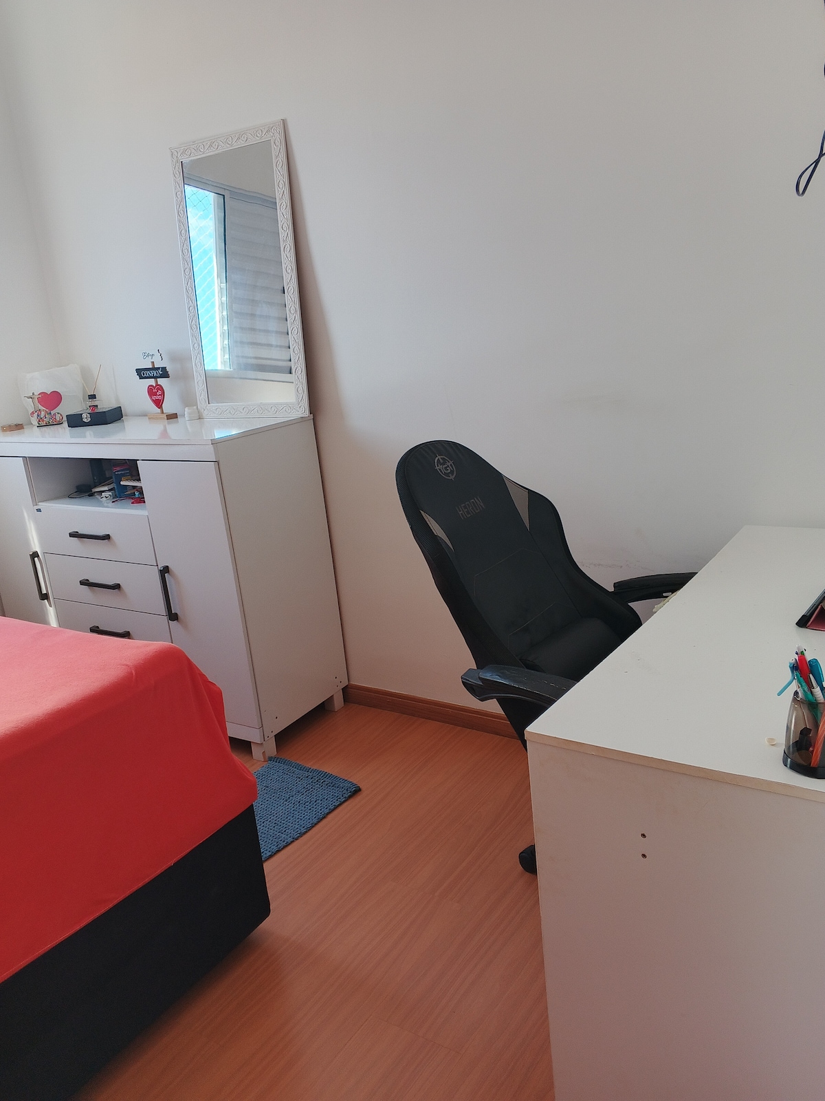 O apartamento se localiza no térreo, possui garagem e é bem seguro! A casa está em boas condições e é bem ventilada. É um lugar simples, mas bem aconchegante e com internet de 600 mega!