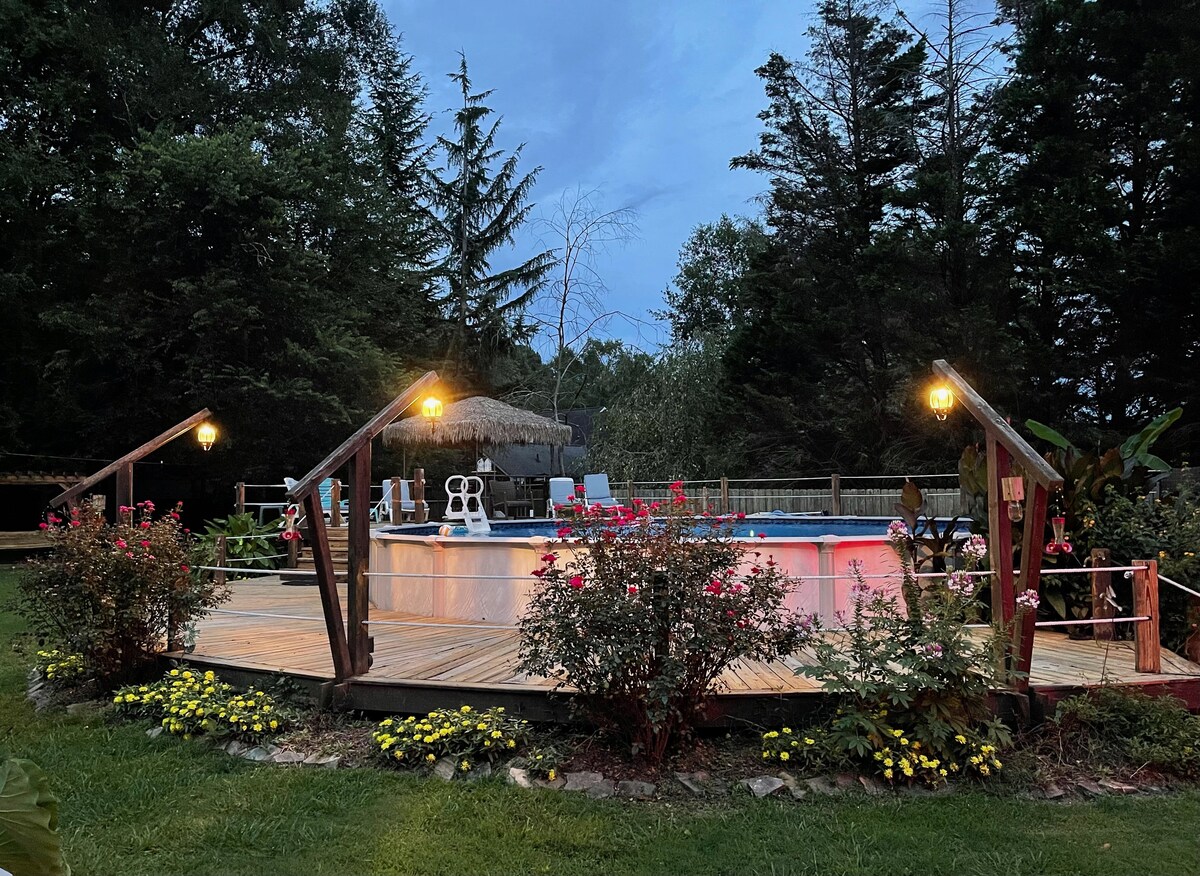 डाउनटाउनपासून 3 मैलांच्या अंतरावर, ब्रॉड स्ट्रीट. संपूर्ण रोममध्ये काय ऑफर आहे ते पहा. आमच्या छोट्या कॉटेजमध्ये संपूर्ण कुटुंबासह आराम करा. रॉकिंग चेअर फ्रंट पोर्च, पोर्च स्विंग , आऊटडोअर सीटिंग आणि गॅस ग्रिलसह बॅक डेक. फायर पिट आणि स्विंगसह प्रशस्त अंगण. मोठ्या डेक आणि लाउंज खुर्च्यांसह ग्राउंड पूलच्या वर. 3 बेडरूम्स 2 बाथरूम्स, सुसज्ज किचन, वॉशर आणि ड्रायर. स्ट्रीम करण्यासाठी रोकू टीव्ही असलेली फॅमिली रूम आणि एक्सफिनिटी हाय स्पीड इंटरनेट. रोम एक्सप्लोर करा, आम्हाला तुम्हाला भेटायला आवडेल.