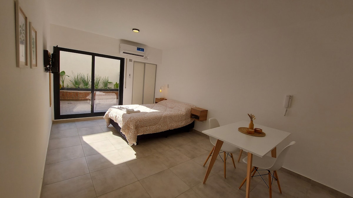 Monoambiente moderno con todas las comodidades y una excelente ubicación. Ideal para viajeros, parejas o quienes visitan la ciudad por trabajo. El departamento es un espacio que fue pensado para que te sea agradable y te sientas a gusto. Cuenta con todas las comodidades: cocina totalmente equipada, cama, baño, balcón y espacio común al aire libre. Esta ubicado en una zona estratégica, con fácil acceso a transporte público, comercios y puntos de interés. A disfrutar de tu estadía!