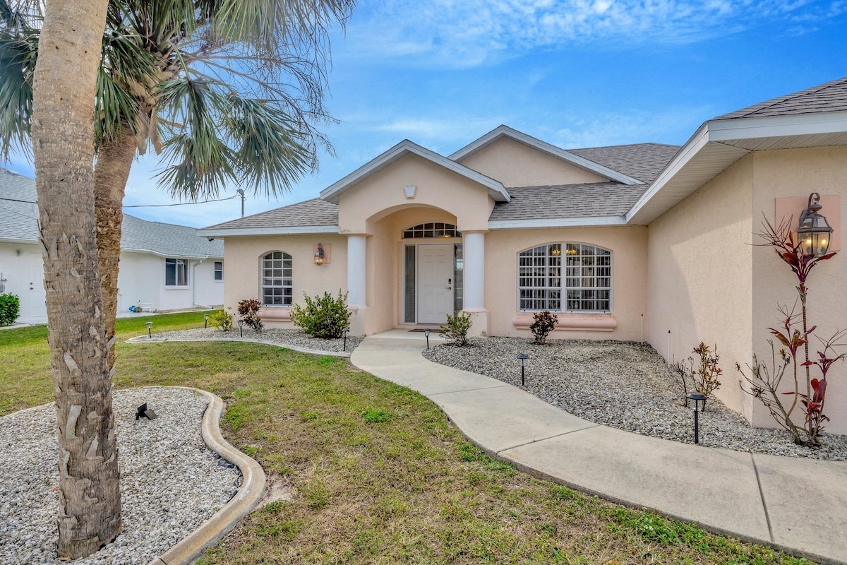 रोटोंडा वेस्टमध्ये जा! हे अगदी नवीन, कालवा - समोरचे घर 5 बेड्स + अभ्यास, 2.5 बाथ्स, मजबूत सेफ रूम आणि खाजगी पूल, पॅटीओ स्क्रीन, गोपनीयता आणिविश्रांतीसाठी योग्य आहे. क्वार्ट्ज, उंच छत आणि कालव्यांकडे पाहणाऱ्या प्रशस्त अंगणासह आधुनिक किचनचा आनंद घ्या; उत्तम मासेमारी. टीव्ही, इनडोअर आणि आऊटडोअर गेम्स आणि खेळणी. अप्रतिम समुद्रकिनारे आणि चित्तवेधक सूर्यास्तापासून फक्त 10 मिनिटे. गोल्फ, पिकलबॉल, दुकाने आणि रेस्टॉरंट्सजवळ सोयीस्करपणे स्थित. बीच आयटम्स प्रदान केले! तुमचे फ्लोरिडा नंदनवन तुमची वाट पाहत आहे