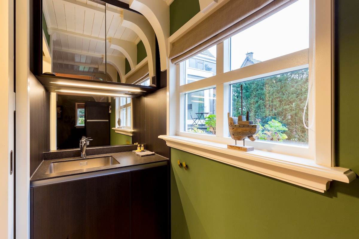 रॉटरडॅमजवळील बर्केल आणि रोडेनड्रिजमधील एका सुंदर हिरव्या ठिकाणी, आम्ही लिव्हिंग रूम आणि बेडरूम (एकूण 47m2), लाउंज खुर्च्या आणि गार्डन टेबल आणि खुर्च्या असलेले एक सुंदर राखून ठेवलेले सनी गार्डन असलेले एक आकर्षक अपार्टमेंट ऑफर करतो. नाश्ता ऑर्डर करण्याची सुविधा. अपार्टमेंटचे स्वतःचे प्रवेशद्वार आहे आणि ते पूर्णपणे सुसज्ज आहे; सुपर फास्ट वायफाय, टीव्ही, सेंट्रल हीटिंग आणि पार्किंग. इलेक्ट्रिक सायकल सुरक्षितपणे लॉक करून चार्ज देखील केले जाऊ शकते. सुपरमार्केट जवळ, सुंदर केंद्र 5 मिनिटे सायकलिंग.