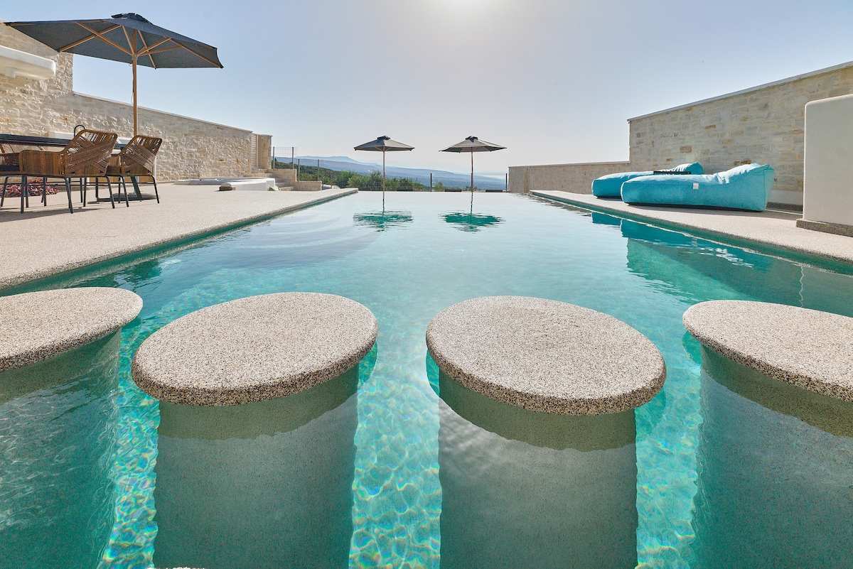 रुप्सच्या शांत गावामध्ये सेट केलेले, एरिन व्हिला हे जास्तीत जास्त सात गेस्ट्सचे एक शांत रिट्रीट आहे. तीन स्टाईलिश बेडरूम्स, 4 - सीटर व्हर्लपूल (नॉन - हीटेड) असलेला 30 मिलियन ² खाजगी पूल आणि हिरव्यागार 120 मिलियन ² लॉन, खेळाचे मैदान आणि बार्बेक्यू क्षेत्रासह बाहेरील जागेचा अभिमान बाळगणे, हे कुटुंबे आणि मित्रांसाठी योग्य आहे. व्हिलाचे आधुनिक इंटिरियर, पूर्णपणे सुसज्ज किचन आणि विचारशील सुविधा क्रीटच्या मध्यभागी एक आलिशान आणि आरामदायक सुट्टीचे वचन देतात.