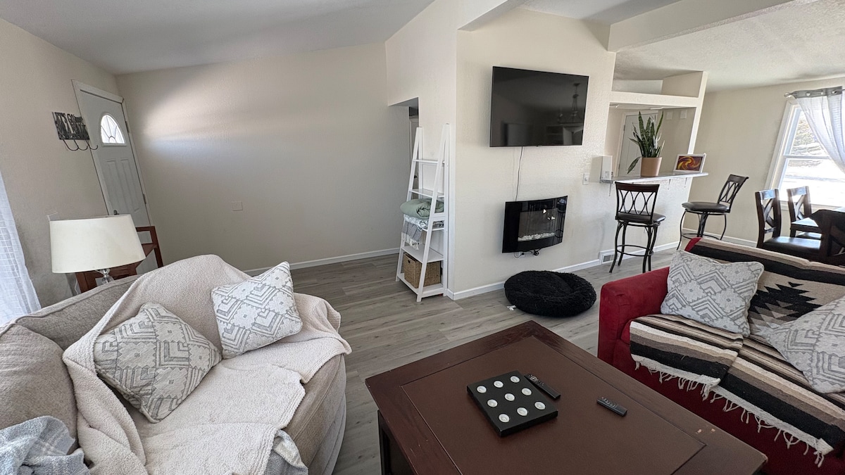 माझे नवनिर्मितीचे कॉटेज 1 9 35 मध्ये बांधले गेले. दोन बेडरूम्स, हाय - एंड किचन, डायनिंग रूम, मोठी लिव्हिंग एरिया, 2 नवीन बाथरूम्स; लाँड्री. सावलीत झाडे, गार्डन्स, फायर पिट आणि ग्रिलसह पॅटीओसह कोपरा. रुग्णालयापासून दोन ब्लॉक्स, कोर्टहाऊस, शेरिफ आणि सिटी पोलिसांपासून एक. मुख्य रस्ता काही ब्लॉक्स आहे. रेस्टॉरंट्स, कॉफी शॉप, कपडे/गिफ्ट स्टोअर्स, फिल्म थिएटर, पोस्ट ऑफिस, हंगामी परेड्स आणि इव्हेंट्सचा आनंद घ्या. चालत जा किंवा शहरातून किंवा फॉरेस्ट्री पार्कमधील रस्त्यावरून आमच्या बाईक्स चालवा.