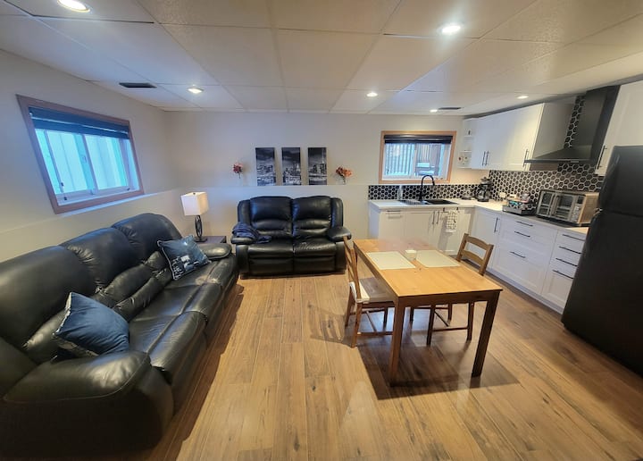 सुसज्ज पूर्ण बेसमेंट रूम आणि लिव्हिंग रूम