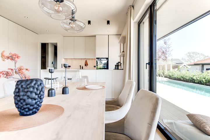 स्विमिंग पूल असलेल्या जंगलाजवळील आधुनिक अपार्टमेंट
