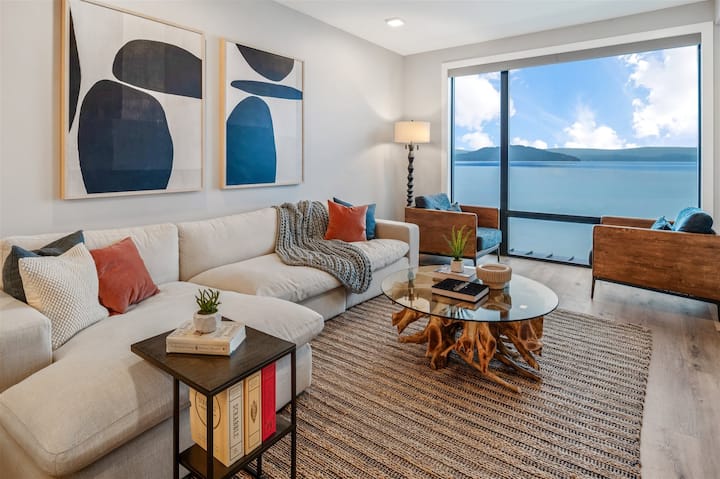 टॉप फ्लोअर लक्झरी वॉटरफ्रंट: पूल, हॉट टब, EV
