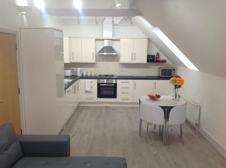 या आरामदायक पहिल्या मजल्याच्या फ्लॅटसाठी अप्रतिम लोकेशन