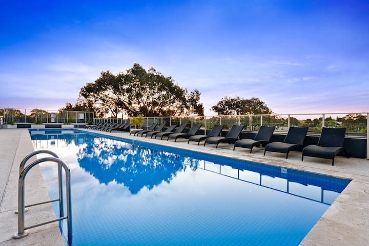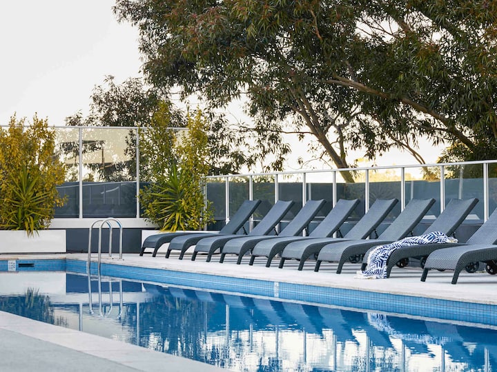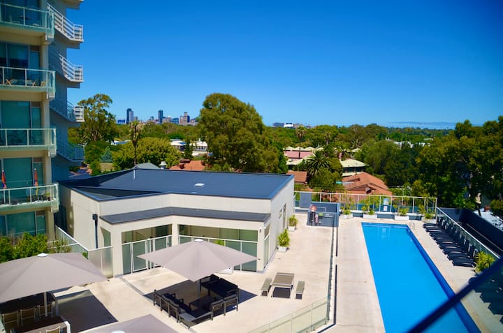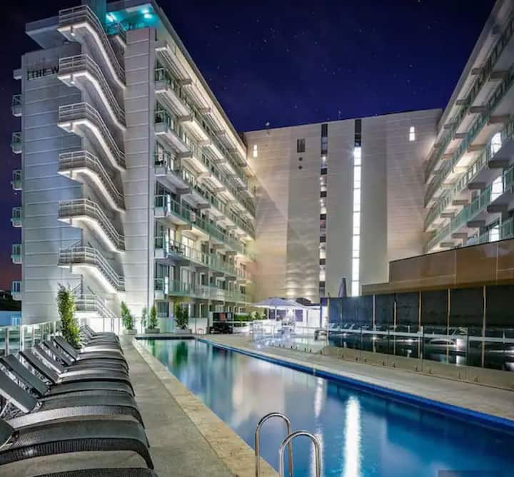आधुनिक 1BR पूलसह • जिम • पार्किंग - शहराजवळ