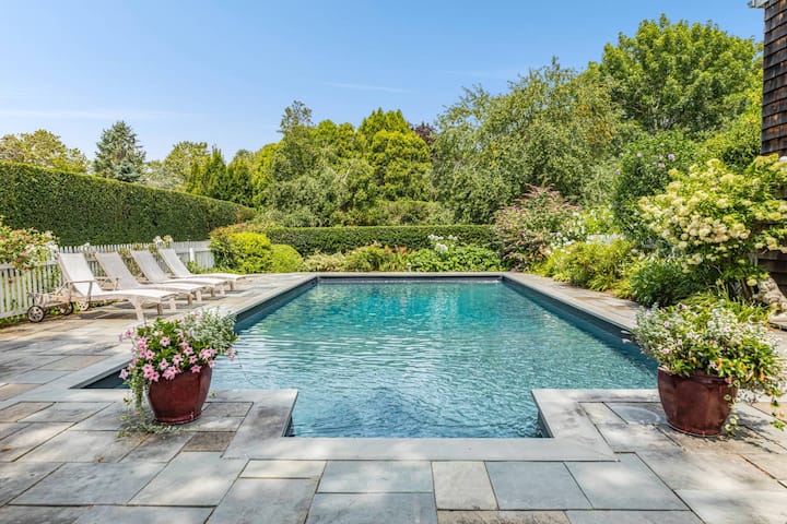 अप्रतिम सेंट्रल ई. हॅम्प्टन होम/ गनिट पूल.