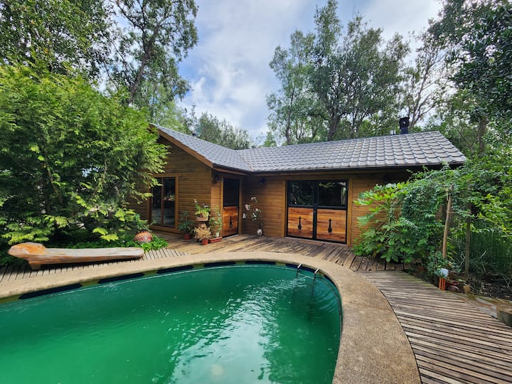 कॉम्प्लो नॅचरल टोटोरेल्समध्ये स्विमिंग पूल असलेले केबिन