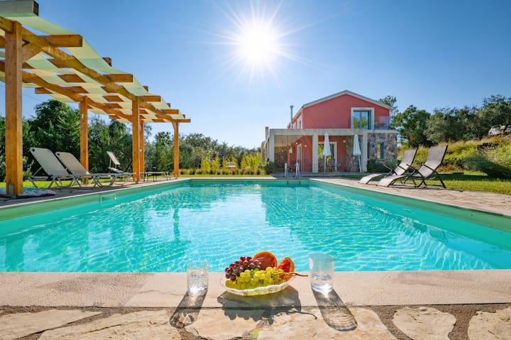 व्हिला नटिलिया: पूल, ए/सी, सुंदर दृश्ये, गार्डन्स