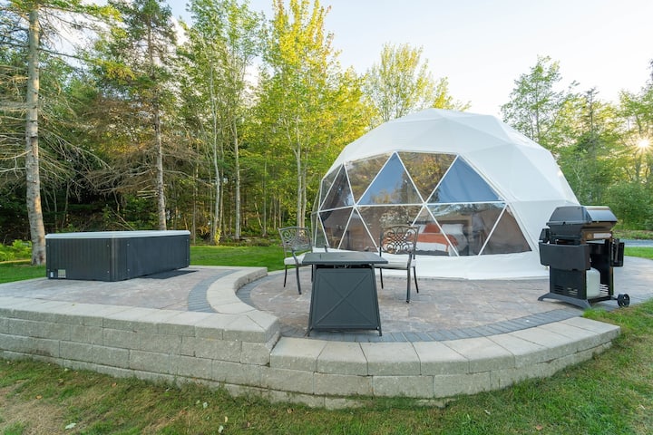वुड - फायर हॉट टबसह लक्झरी जिओडेसिक डोम