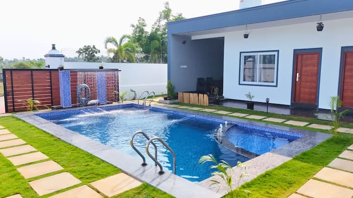 खाजगी प्लंज पूलसह लक्झरी ए फ्रेमचा सामना करणारा समुद्र