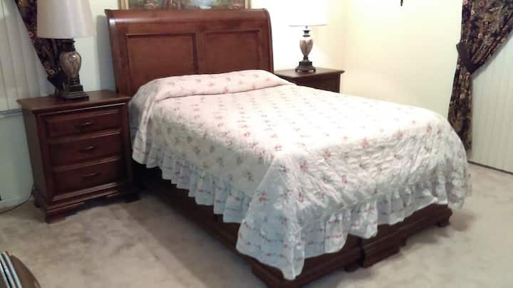 शांत होम/ साईड यार्ड व्ह्यूमध्ये आनंदी बेडरूम