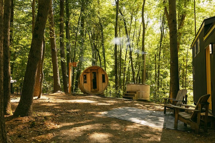 जंगलातील ऑलिव्हरचे छोटे घर | सॉना आणि हॉट टब