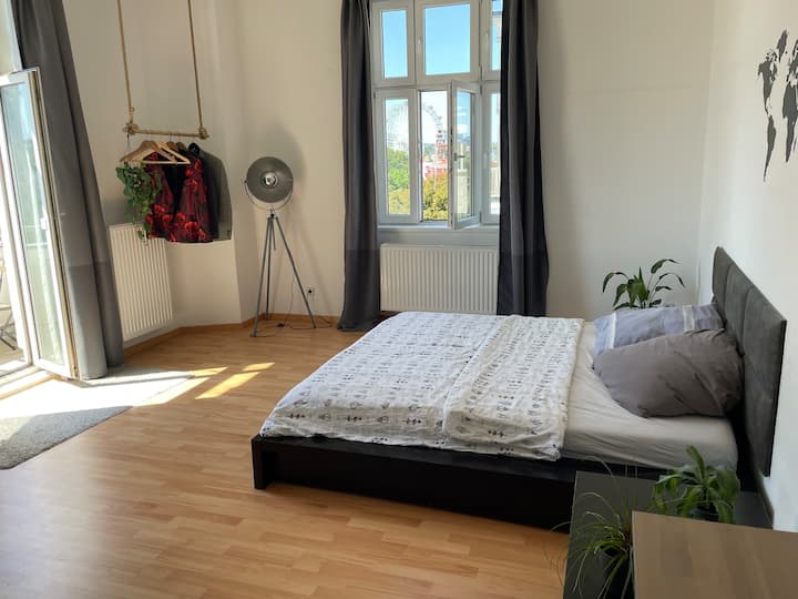सनी आणि स्टायलिश | टॉप लोकेशन, किंग बेड आणि बाल्कनी