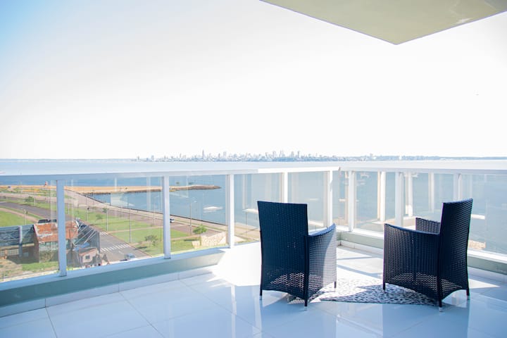 नदीच्या सुंदर दृश्यासह अपार्टमेंट