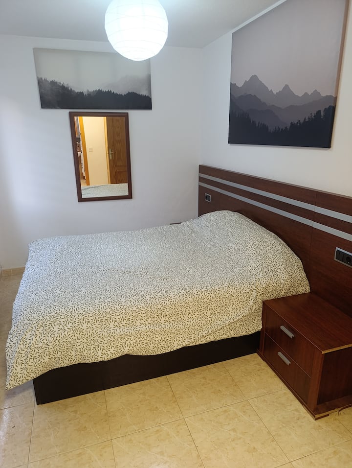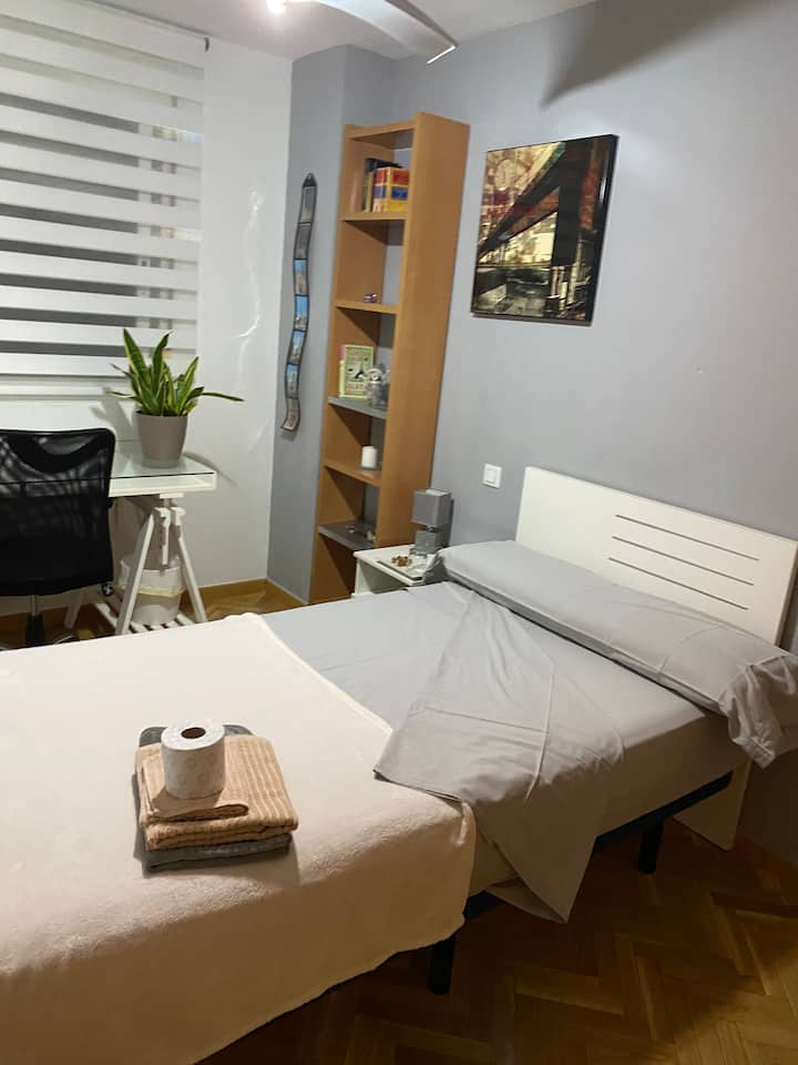 डबल बेड असलेली प्रशस्त आणि शांत रूम