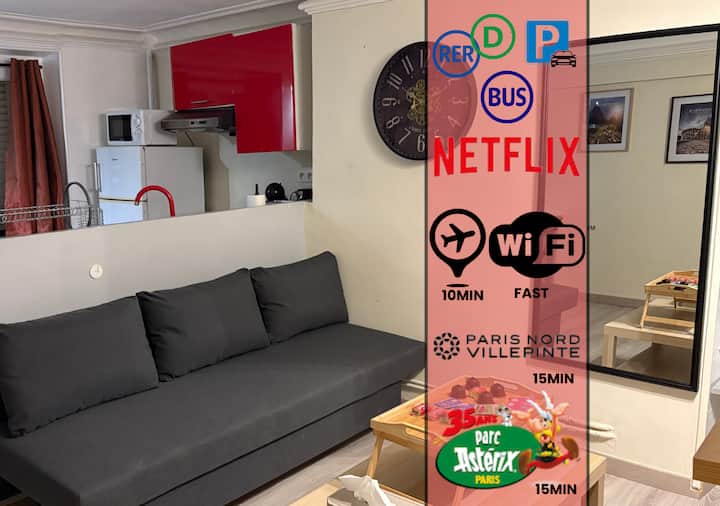 पार्क एस्टेरिक्स, सीडीजी आणि चँटिलीजवळील आरामदायक स्टुडिओ