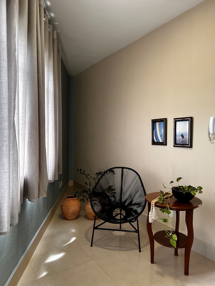 वातानुकूलित आणि बाल्कनीसह आरामदायक सुईट.