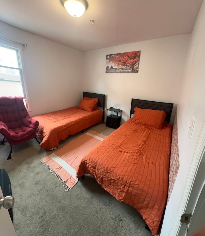 शेअर केलेले बाथरूम असलेली आरामदायक दोन सिंगल बेडरूम