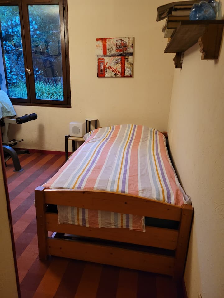 टीव्ही आणि जिम मशीनसह सिंगल बेड