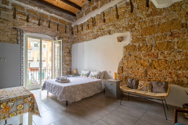पालेर्मोच्या मध्यभागी बाल्कनी असलेली रूम