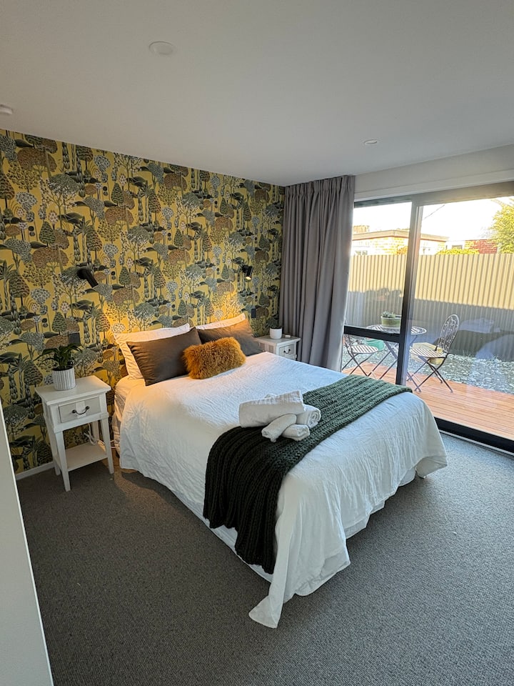 एन्सुईट असलेली स्टायलिश क्वीन रूम | कंट्री एस्केप