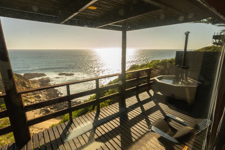 हॉट टबसह ओशियनफ्रंट केबिन