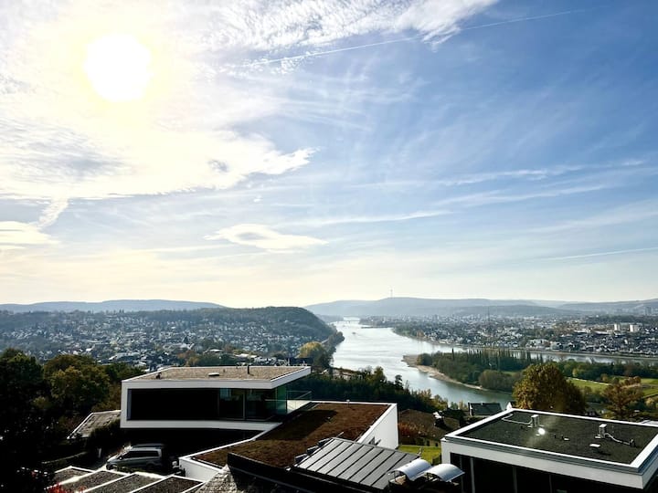 कोब्लेन्झमधील ऱ्हाईनकडे पाहणारे 2 बेडरूमचे अपार्टमेंट!