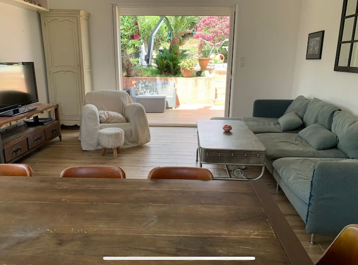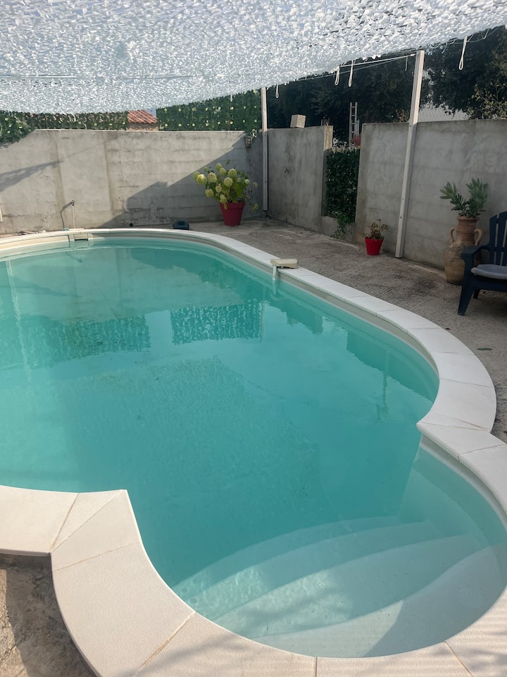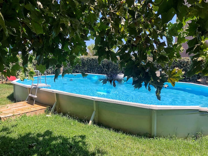 स्विमिंग पूल आणि मोठ्या कुंपण असलेल्या गार्डनसह व्हिला तळमजला