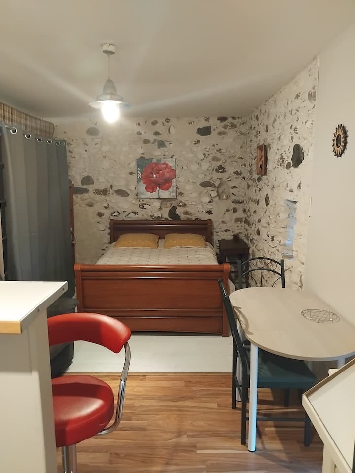 छान मैत्रीपूर्ण स्टॉपओव्हर कॉटेजमध्ये बेड
